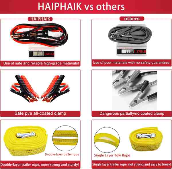 【Emergency Car Kit】: Det bedste bilnødsæt til Europa 2026 inkluderer den essentielle værktøjskasse, multifunktionsskovl, avancerede startkabler (11,8 FT), dækreparationsværktøj, træktov, overlevelsesfløjte, lommelygte, handsker og mere. Med 124 dele maksimerer den din sikkerhed under sammenbrud eller ulykker.【Batteri-jumper-kabler】: UL-certificerede startkabler tilbyder overlegen sikkerhed og pålidelighed sammenlignet med ikke-certificerede produkter. Fire store krokodilleclips sikrer et sikkert greb med isolerede gummibelagte kæber. Det forstærkede kabelhus har premium PVC-materiale, der giver frost-revnemodstand, revneforebyggelse og filtringsfri ydeevne! Et holdbart batteristartkabel er din pålidelige følgesvend til rejse- og campingeventyr!【Værktøjssæt til bilreparationer】: Dette praktiske værktøjssæt indeholder 16 vigtige værktøjer! Pænt opbevarer must-have værktøj til reparation af nødkøretøjer: skruenøgler, tænger, hammer, spændingstester, magnetiske fladhovede og stjerneskruetrækkere, fem størrelser sekskantnøgler... Hvert værktøj har sit dedikerede sted. Den robuste plastikkasse tåler tryk. Kompakt og bærbar, opbevar den hvor som helst!【Sikkerhedssæt til vejsidekøretøjer】: Velegnet til sedans, SUV'er, terrængående køretøjer, campingvogne, lastbilchauffører, motorcyklister og andre køretøjstyper. Vær altid forberedt på nødsituationer! Dette kompakte bilnødsæt kan nemt opbevares i dit køretøj og indeholder vigtige værktøjer til at sikre bekymringsfri rejse. Det er den perfekte overraskelsesgave til nye bilejere eller underforberedte chauffører.【Bærbar foldeskovl】 Kombinerer praktisk, alsidighed og sikkerhed: skovlblad, savtænder, flaskeåbner, hakke, sømtrækker, hakke, kompas. Fuldt forlænget længde: 18 tommer. Foldes kompakt for at passe nemt i en taske. I nødstilfælde kan den grave gennem jorden for at frigøre dit køretøj eller knuse ruder for at undslippe. Hvis du støder på problemer med produktet ved køb, bedes du kontakte os med det samme. Vi vil yde assistance! Vi er forpligtet til at forbedre din kundeoplevelse!.
