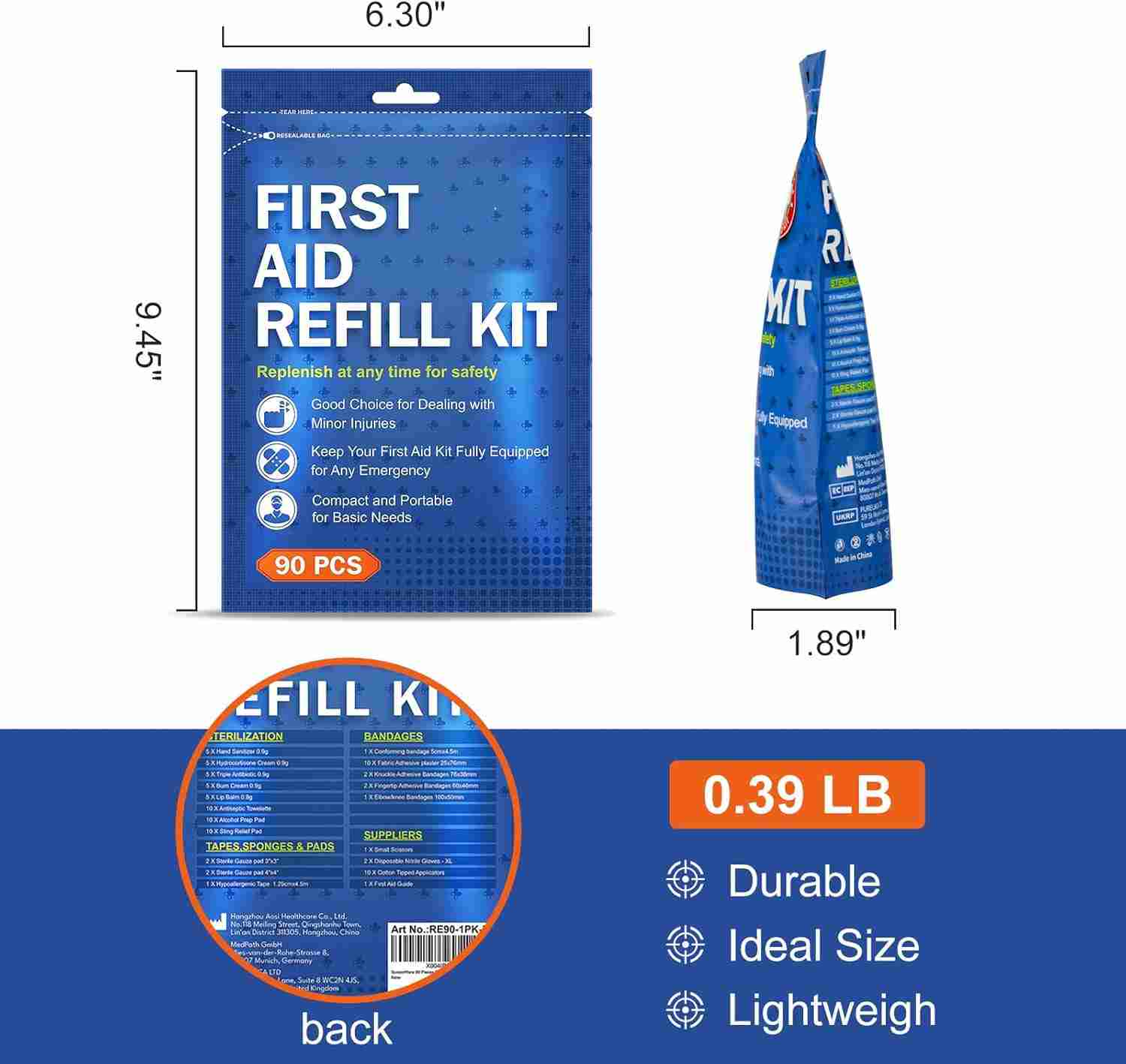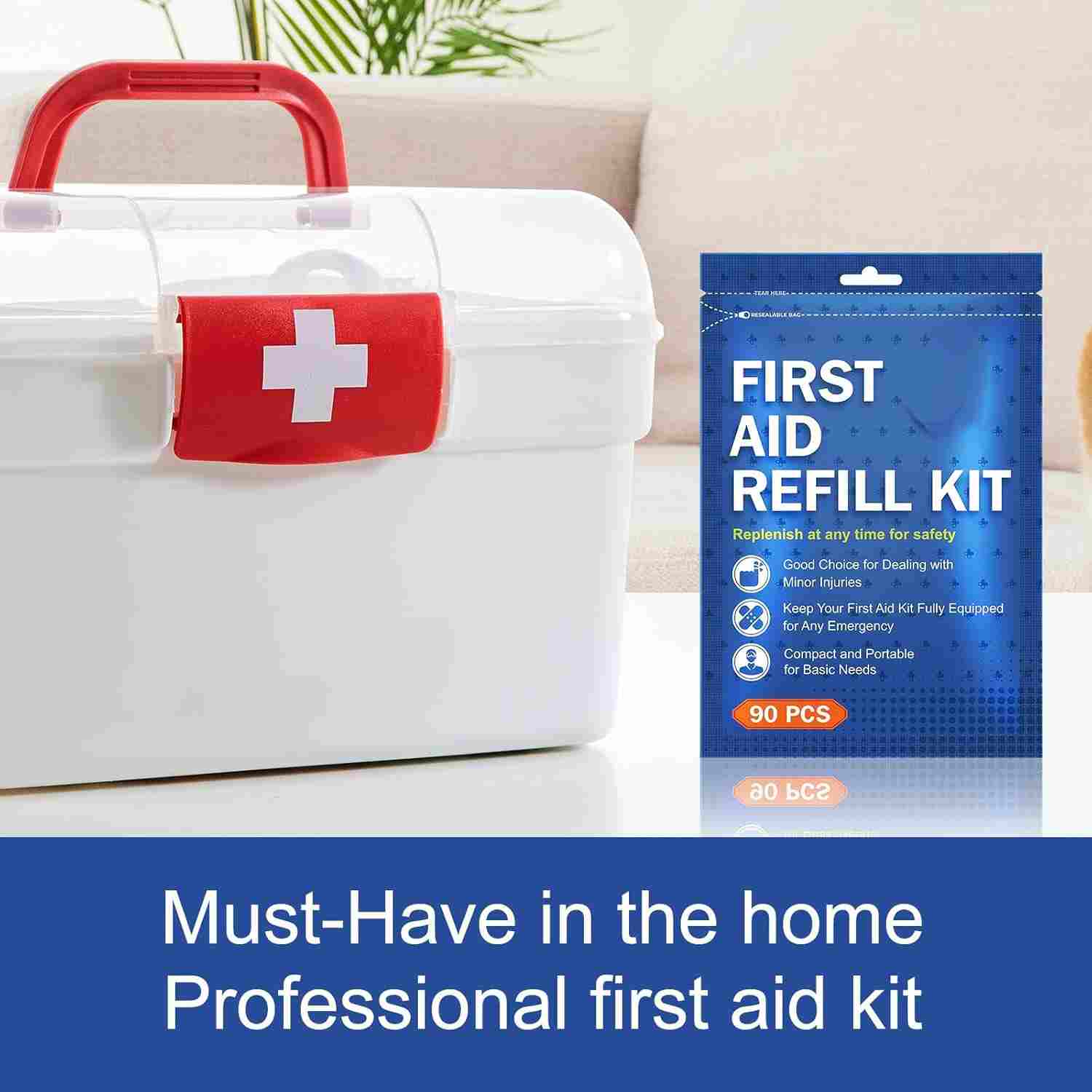 First Aid Refill Kit er en vigtig sikkerhedsløsning til enhver familie, designet til at håndtere almindelige skader og nødsituationer i hjemmet. Det inkluderer bandager, antiseptiske servietter, sakse, klæbende tape, handsker og andre medicinske forsyninger, der hjælper dig med at reagere hurtigt på snitsår, forbrændinger, forstuvninger og mindre ulykker. Kompakt og velorganiseret, dette sæt sikrer ro i sindet ved at holde vitale sundhedsvæsenet inden for rækkevidde for både voksne og børn.